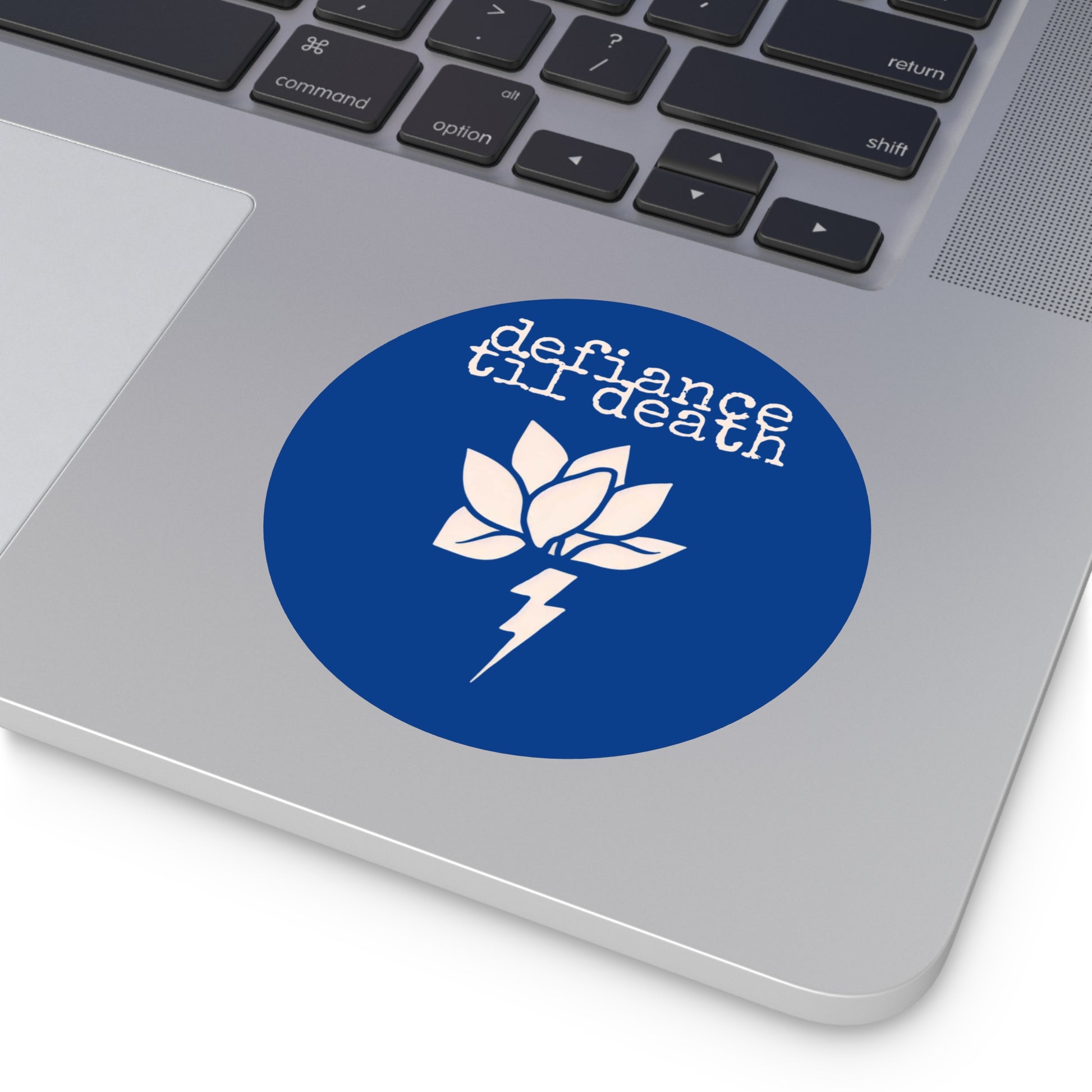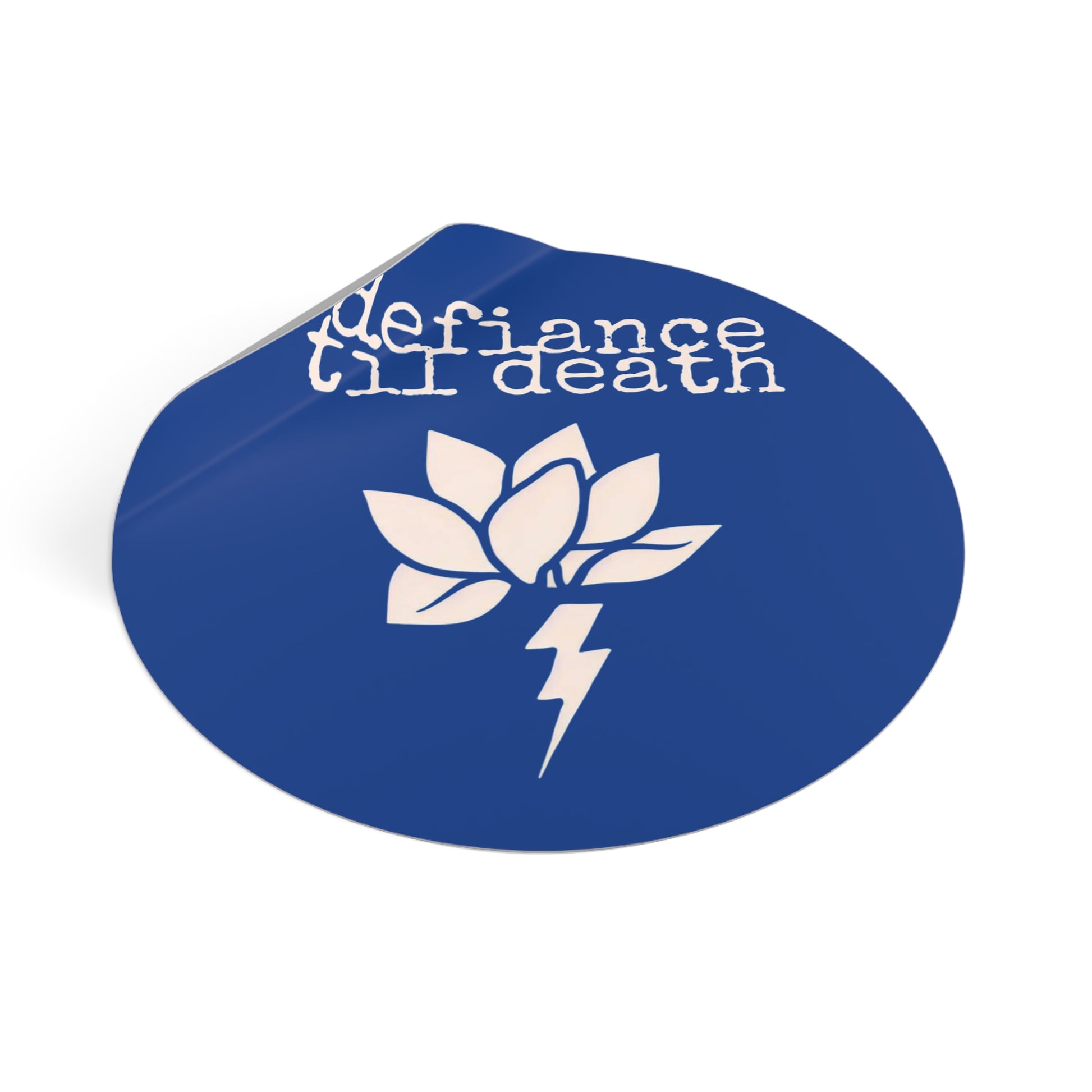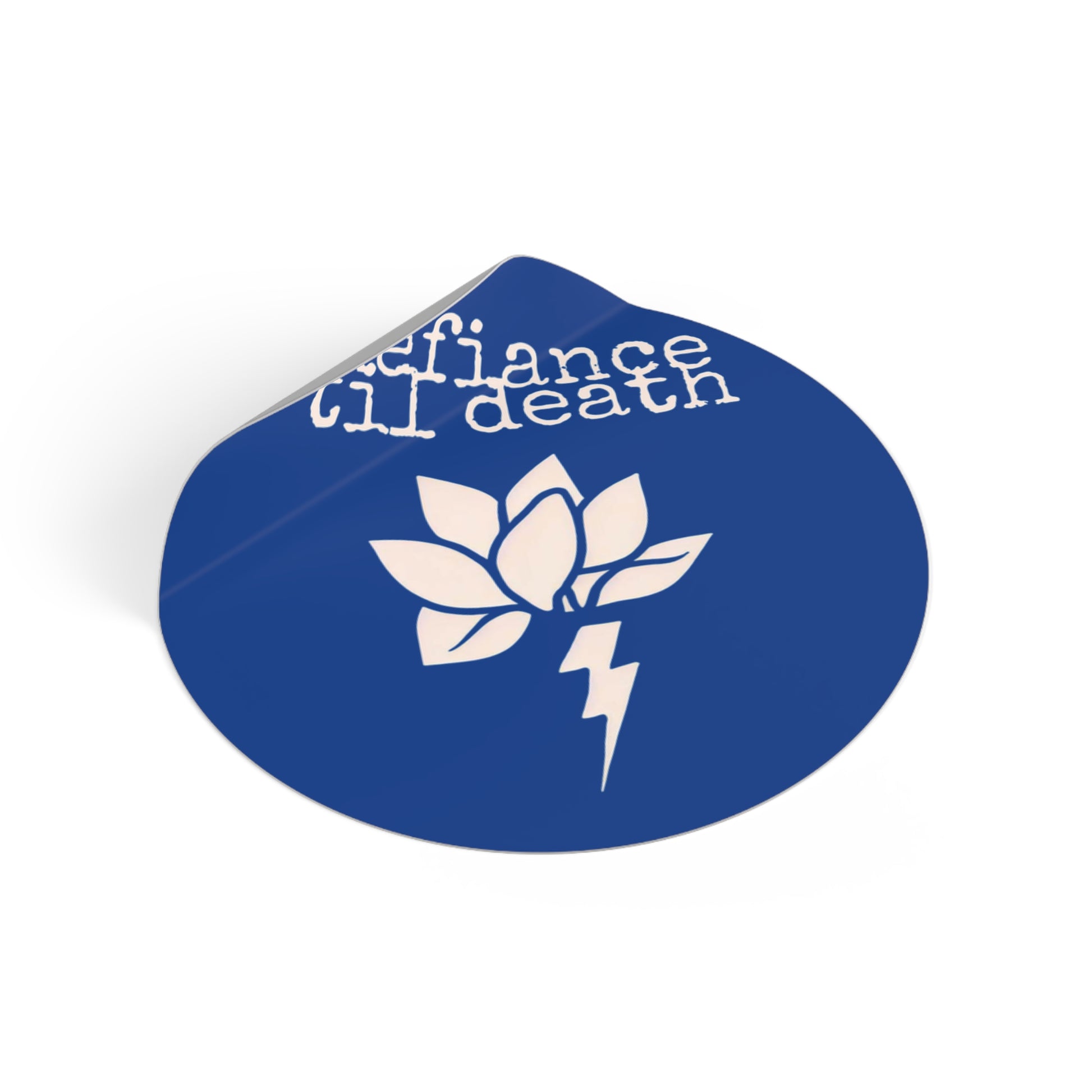 Defiance till Death Round Vinyl Stickers - Edgy Lotus Design for Punk Culture