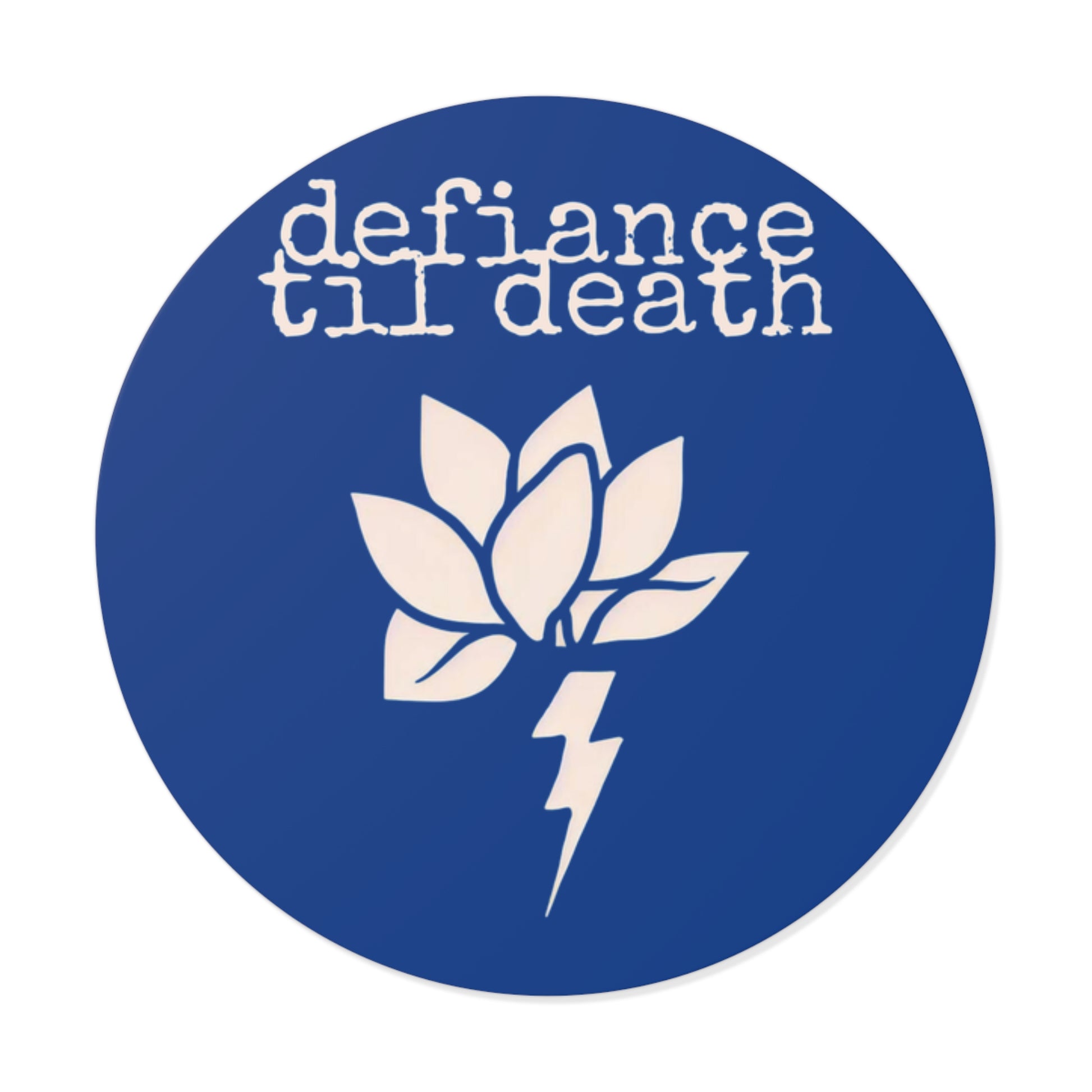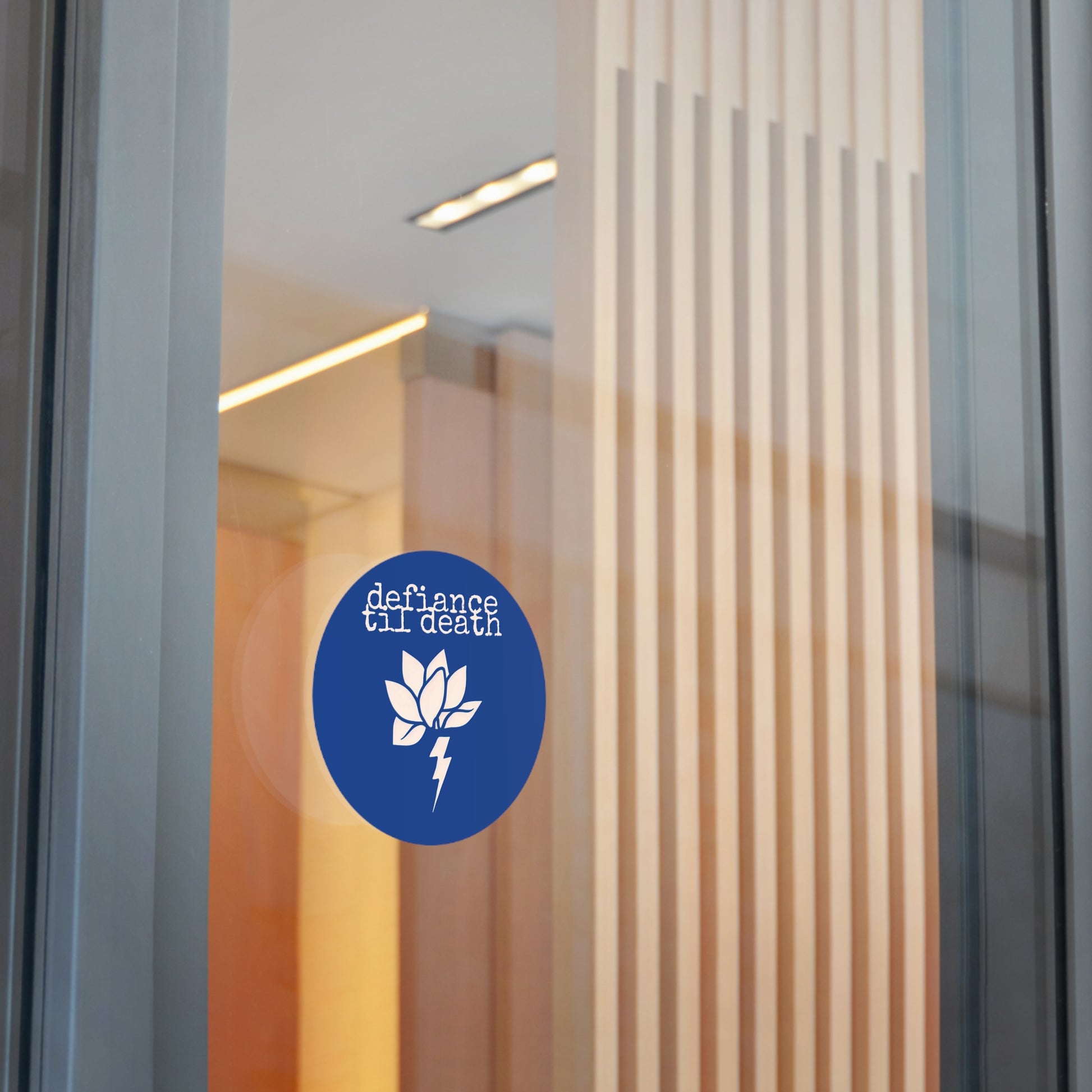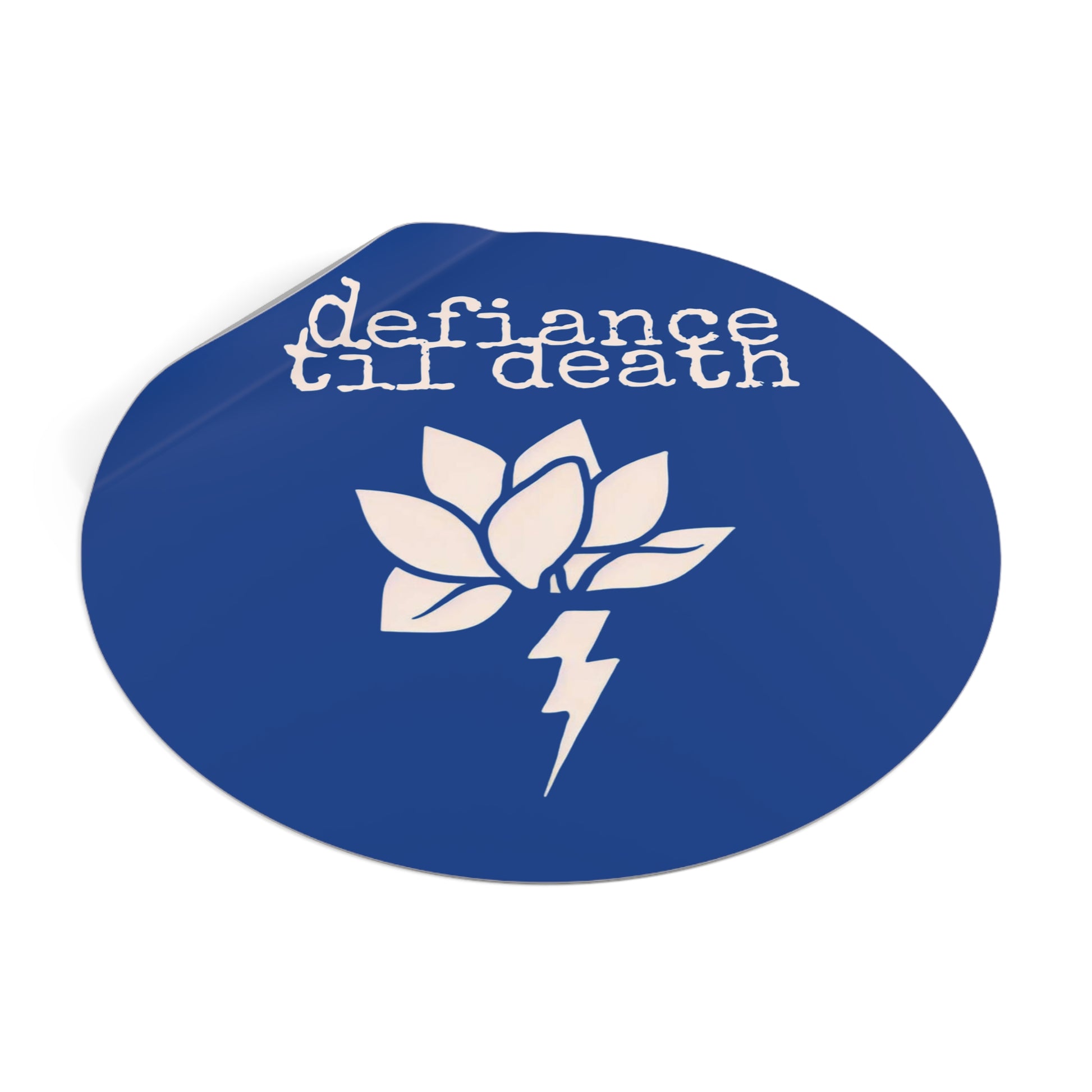 Defiance till Death Round Vinyl Stickers - Edgy Lotus Design for Punk Culture
