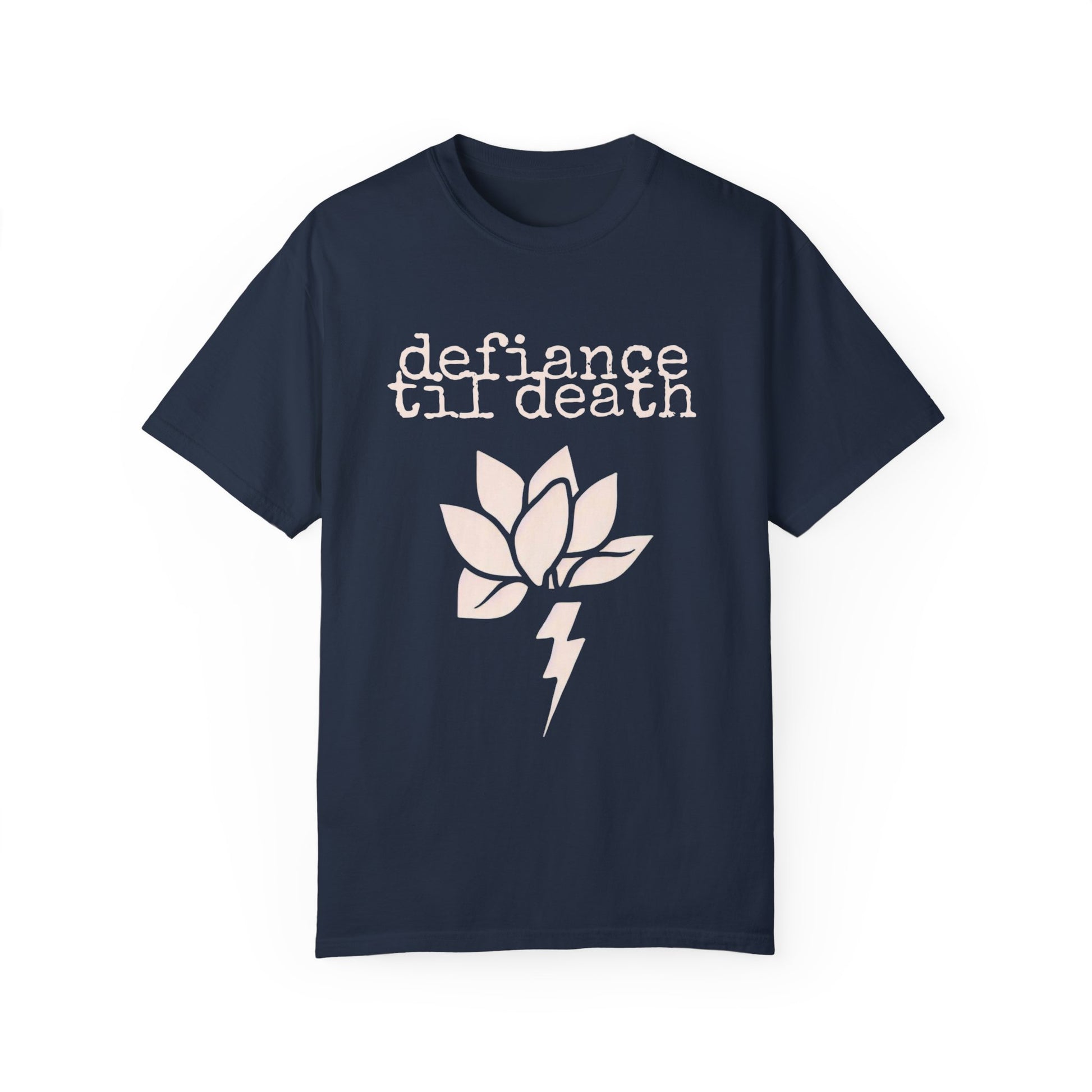 Defiance Till Death Unisex Garment-Dyed T-Shirt - Bold Floral Design